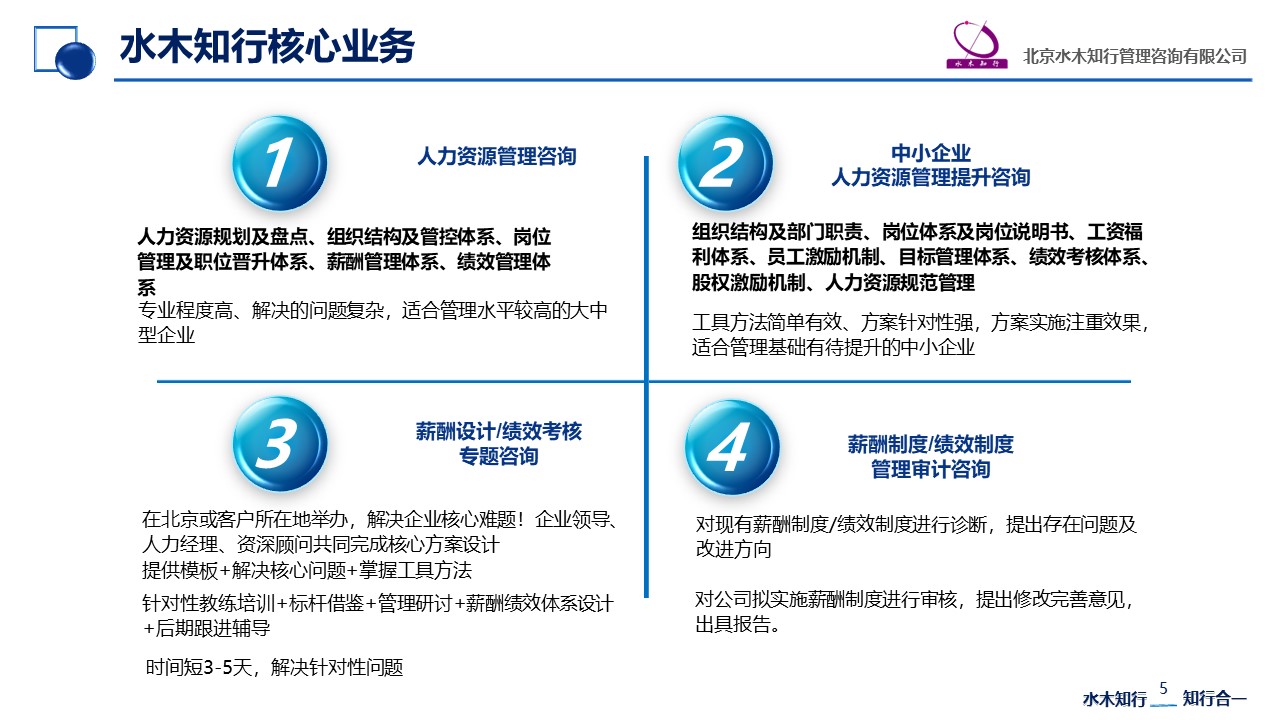 北京水木知行管理咨詢有限公司(www.bjsmzx_com.uisftb.cn)專注提供人力資源管理咨詢、人力資源管理培訓、人力資源招聘咨詢、人力資源獵頭服務業務;咨詢業務范圍包括組織結構與管控體系、崗位管理體系、薪酬管理體系、績效管理體系,咨詢形式包括全過程咨詢、教練式咨詢和特訓班;培訓業務包括企業基礎管理...[詳情]